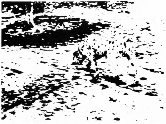 The ‘Mysterious Melody’ illusion provides a striking example of ‘top-down processing’, or the use of previously acquired knowledge, in sound perception. Other examples occur in vision. For example, when you first view the picture below, all you see is a jumble of blobs. But when you are told that it is a spotted Dalmation dog against a dappled background, you begin to see its ears, nose, tail, and so on, until the entire outline of the dog emerges. Our stored knowledge of thousands of dogs that we have seen in the past enables us to reconstruct this image correctly. Analogously, once we are told the name of this ‘Mysterious Melody’ we can draw on our knowledge of what it normally sounds like, so that we can recognize it.